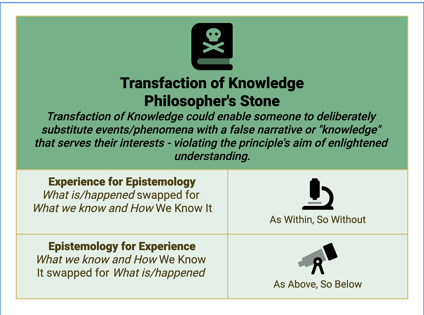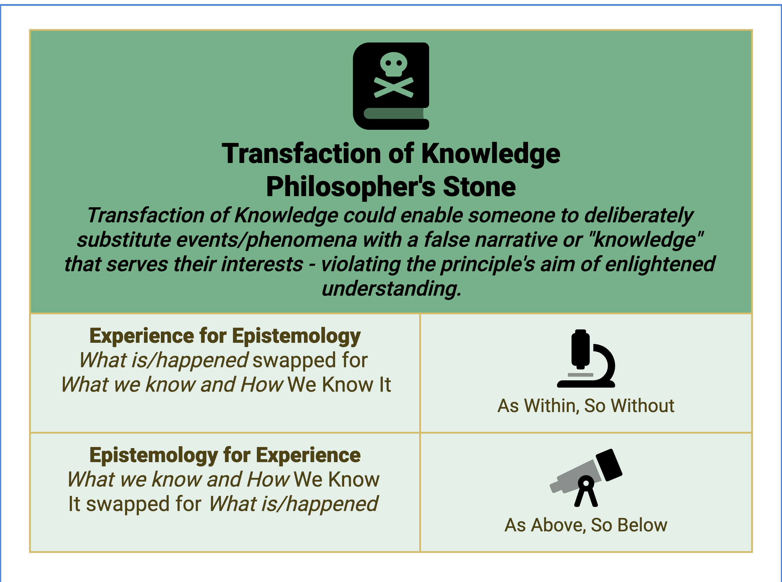 Regardless the Transfactions of Knowledge serve to cage the dialectic and occlude objective reality and a proper dialectical synthesis. Anything that comes out of this dialectic will be critically hamstrung. Transfactions of Knowledge are not slippery slopes, they are Trap Doors.
